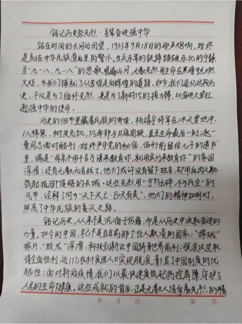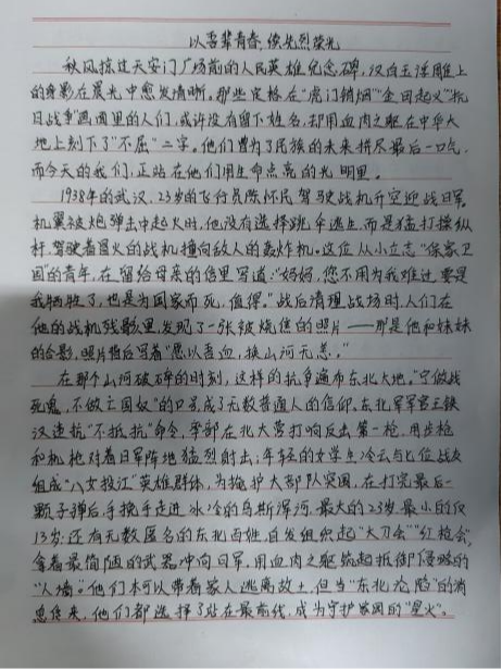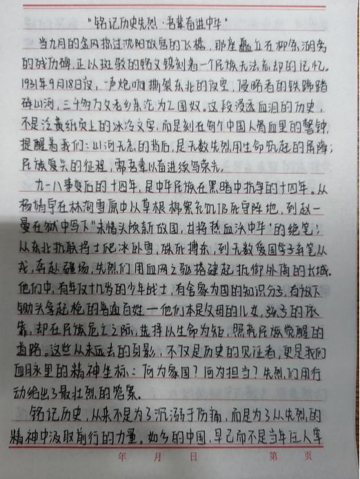同学们围绕主题,表达了对历史的深刻思考。有的作品深入剖析当时的历史背景,观点犀利;有的用激昂的文字唤起爱国热情;还有的结合专业知识,探讨如何将个人理想与国家命运紧密结合,把爱国情怀