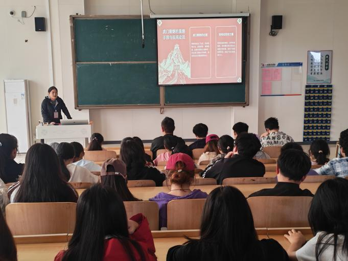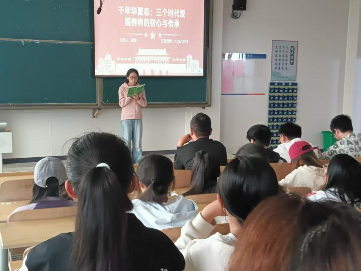 活动中,郝雨老师以“年代为轴、故事为魂”为主线,带领同学们翻开爱国主义的精神画卷。同学们结合史料与鲜活事迹,讲述了不同历史时期的榜样故事:从南宋岳飞"精忠报国"的壮志豪情,到抗日英雄杨靖宇"宁死不屈、保家卫国"的民族气节,再到新时代"大山的女儿"黄文秀扎根脱贫攻坚一线的事迹,生动展现了把个人理想融入国家发展的责任担当。