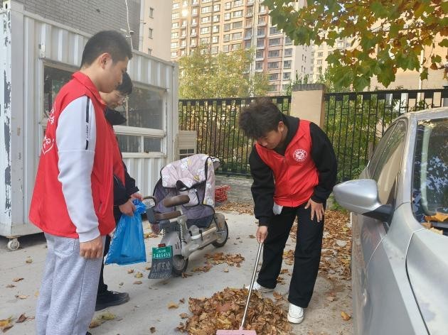 与此同时,志愿者们分组协作,清扫社区内的落叶,以实际行动美化社区环境,助力居民健康生活。