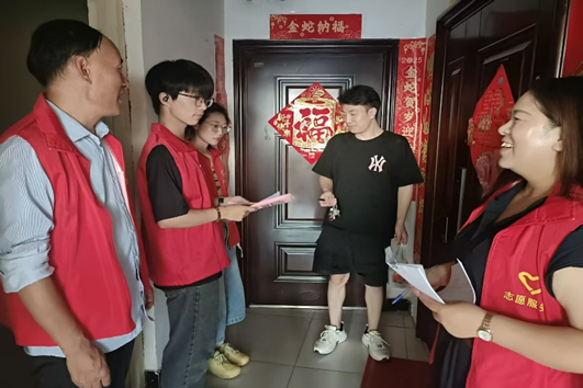在协同社区工作人员上门服务中,志愿者展现出高度的责任心,与工作人员密切配合,挨家挨户仔细核对信息,更新居民数据,确保数据准确无误,为社区管理的高效运行贡献力量。