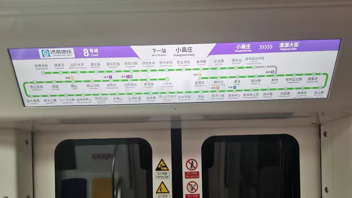 此次开通的8号线亮点纷呈:采用国内首列免涂装铝合金列车,“科创紫”外观搭配100公里时速,兼具颜值与效率;列车为6编组A2型全自动运行车型,车厢配备双USB+Type-C充电接口,11座高架站更带来“空中观景”的独特体验 。运营模式上,线路与4号线实行“Y”型交路贯通运行,6:00至20:00高峰期可实现“一车直达”主城核心区域,无需换乘,工作日共线段行车间隔仅4分30秒,从山东现代学院站出发不到一小时即可抵达泉城公园等城市地标 。
