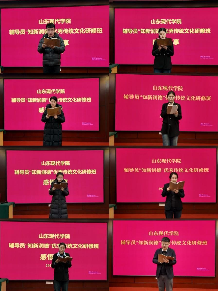 2026年1月26日至28日,山东现代学院辅导员“知新润德”优秀传统文化研修班成功举办,我院全体辅导员参加培训。